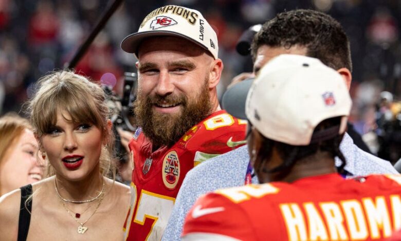 With girlfriend Taylor Swift watching proudly from a VIP suite alongside Ice Spice, Blake Lively, and Lana Del Rey, Travis Kelce helped the Kansas City Chiefs complete a thrilling comeback win in Super Bowl LVIII on Sunday. The superstar tight end caught nine passes for 93 yards, as Kansas City rallied from a 10-point deficit to beat the San Francisco 49ers, 25-22, in overtime.
