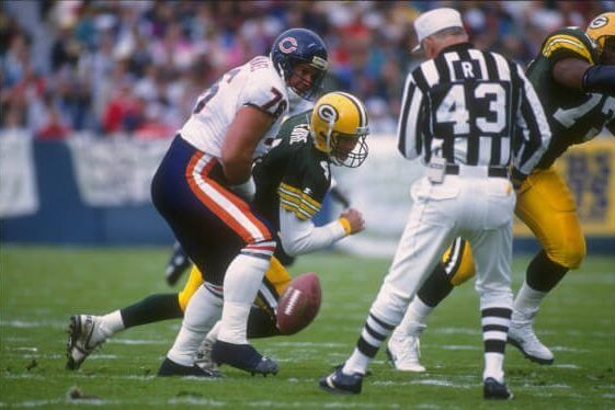 Steve McMichael helped the Bears defense wreak havoc, including against Brett Favre and the rival Packers. (Jonathan Daniel /Allsport)