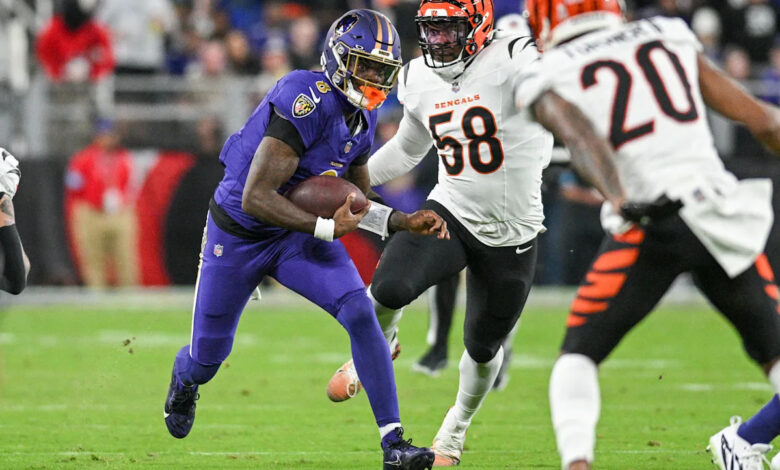 Bengals-Ravens: Lamar Jackson’s 4 TD passes power Baltimore as it rallies and stops late 2-point conversion try to win, 35-34