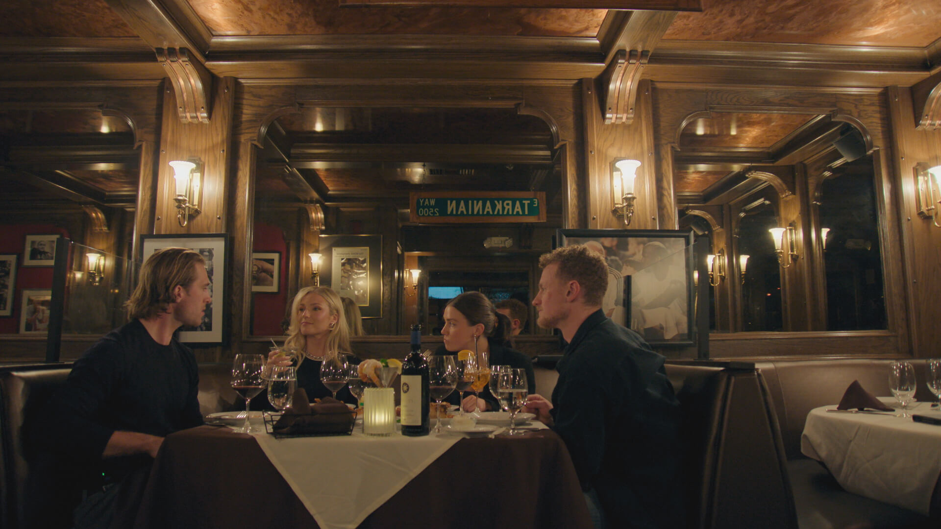 Jack Eichel, right, and Noah Hanifin, left, with their partners, before Eichel orders seemingly the whole menu.