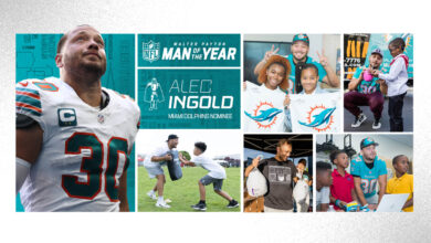 Miami Gardens, Fla. –The Miami Dolphins announced today fullback Alec Ingold as their nominee for the Walter Payton NFL Man…