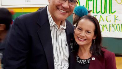 Evergreen Alum and NFL great Jack Thompson with Highline Public Schools Superintendent Dr. Susan Enfield at the event during which…