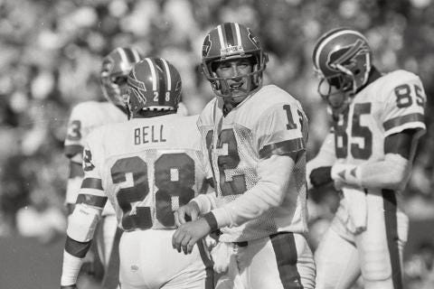 As quarterback of the Buffalo Bills, he sparked a resurgence in a struggling NFL franchise that saw the football team experience the euphoria of an unprecedented four consecutive AFC championships and the disappointment of four straight Super Bowl losses.