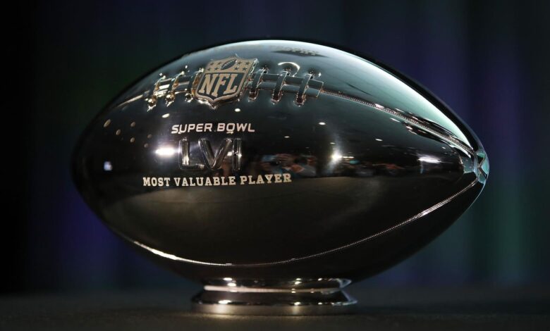 The Pete Rozelle Trophy given to the Super Bowl MVP. (Photo by Katelyn Mulcahy/Getty Images)