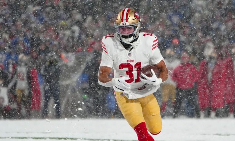 Isaac Guerendo, RB, San Francisco 49ers – The fantasy football season seems to have come full circle. Our first waiver wire article of the year spotlighted Jordan Mason after a significant Christian McCaffrey injury. Now, as we approach the final week of the regular season, another San Francisco running back steps into the spotlight under eerily similar circumstances.