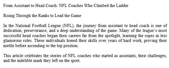 This article celebrates the stories of NFL coaches who started as assistants, their challenges, and the indelible mark they left on the sport.