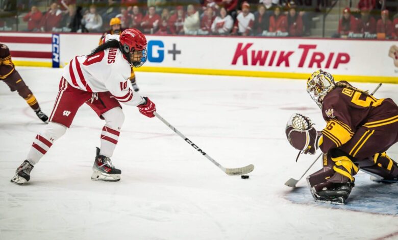 (Photo of Laila Edwards and goaltender Hannah Clark: Dave Kallmann / Milwaukee Journal Sentinel / USA Today Network via Imagn Images)