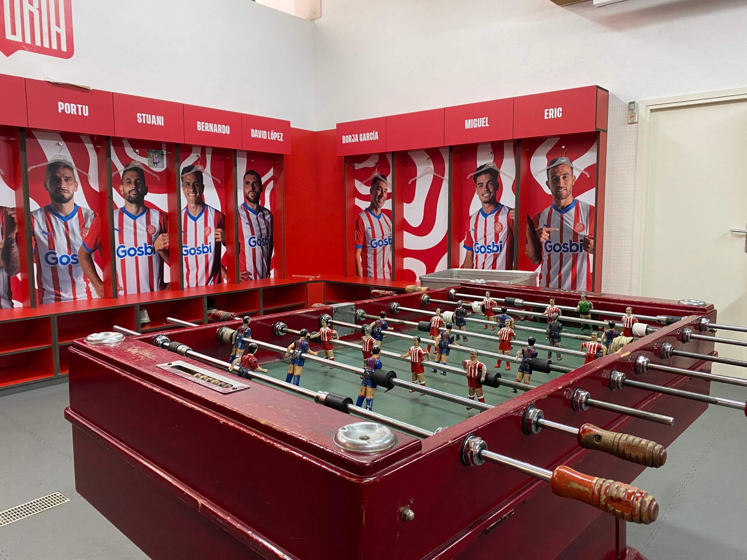 As soon as you open the red wooden door into Girona’s dressing room at the Montilivi stadium, you are drawn to something unusual: a table football set.