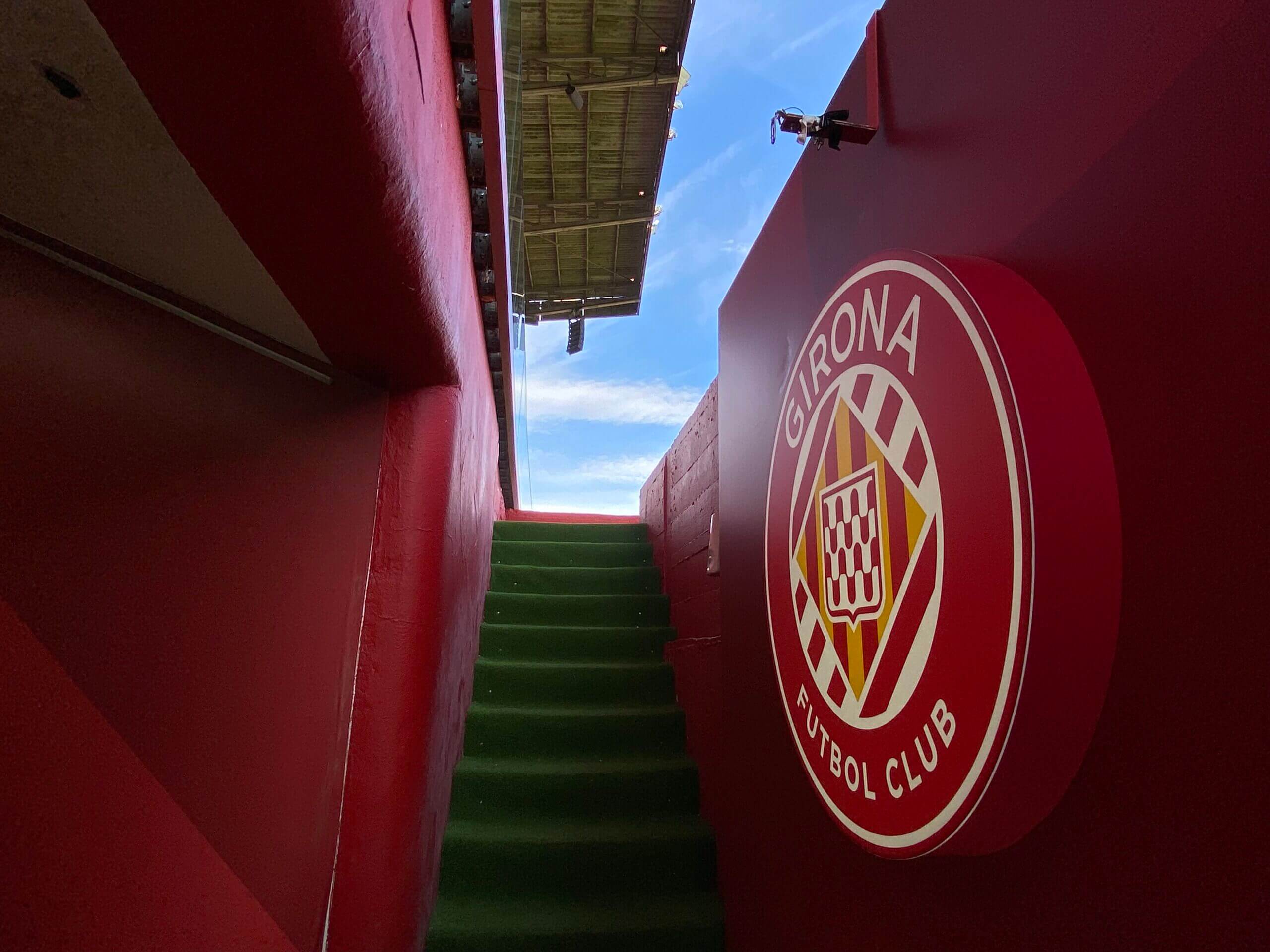 The entrance to the pitch at the Montilivi stadium (Pol Ballus/The Athletic)
