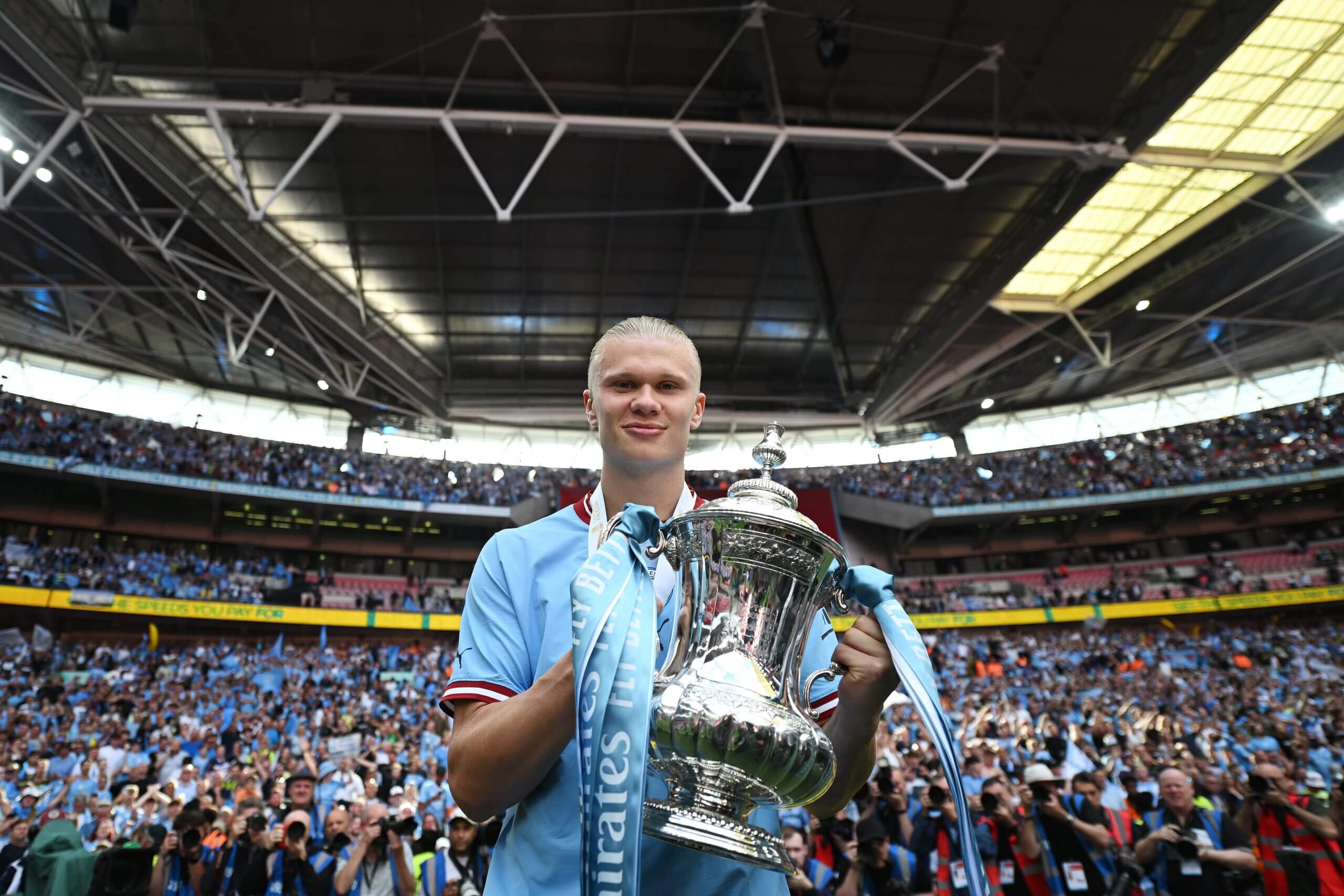 Haaland has come along and reset standards; 36 goals in 35 Premier League appearances for Manchester City in his debut season — a new record — and almost a goal a game since then, the quickest player to reach two, three, four and five hat-tricks, a pitiless, unquenchable, 6ft 4in phenomenon.