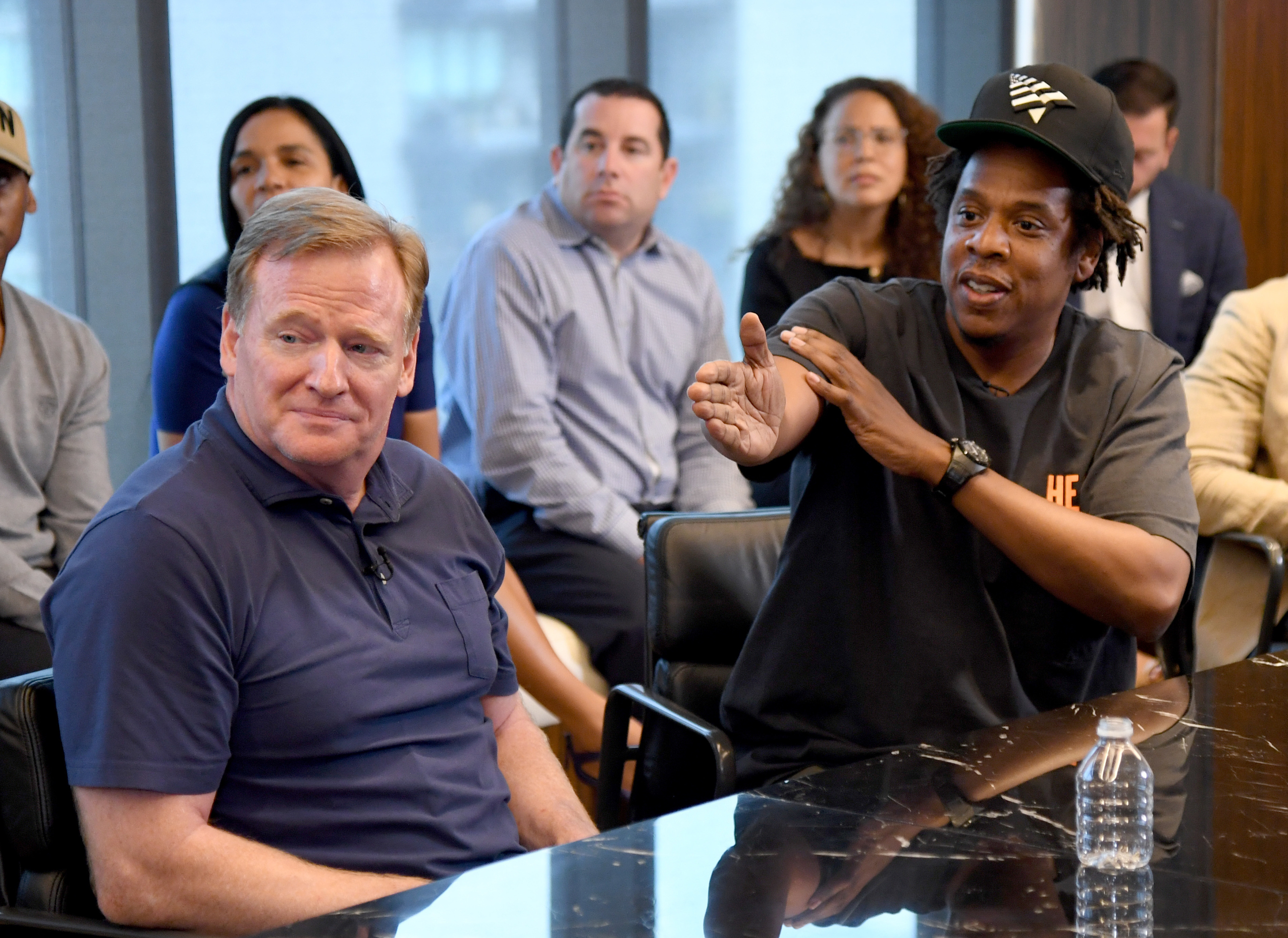 According to Jay-Z, his switch from staunch NFL critic to potential ally came not as an abrupt about-face but through a series of conversations with Goodell over the last several months. He credits Patriots owner (and President Trump supporter) Robert Kraft with helping to start their talks; Kraft has also played an active role in Roc Nation’s criminal justice reform initiatives, most notably as a supporter of Meek Mill. Plans for collaboration include expanding on the league’s existing Inspire Change initiative by adding a program of unofficial anthems (“Songs of the Season”) from select artists to be played during NFL broadcasts, a podcasting platform for players (“Beyond the Field”) and a visual album of Super Bowl halftime shows. Those plans have already been criticized as a platform designed to move player protests off the field, and it already seems to be having the subtle effect of silencing NFL players on the field. One day after Miami Dolphins player Kenny Stills criticized Jay-Z for “choosing to speak for the people, [as if] he had spoken to the people,” Dolphins head coach Brian Flores reportedly had his team play eight straight Jay-Z songs to open up practice.