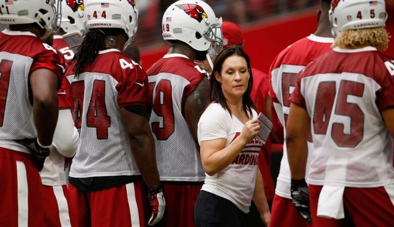 Jen Welter, believed to be NFL’s first female coach, completed her coaching internship with Arizona Cardinals