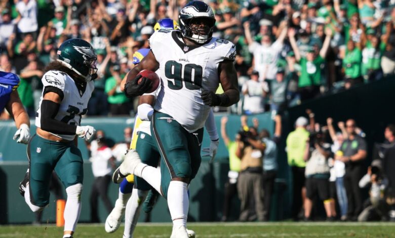 He added five tackles, a sack and a QB hit to help the Eagles improve to 3-0 while the Rams exited with a stinging loss that dropped them to 2-1.