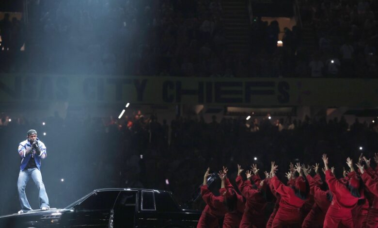 Kendrick Lamar brought West Coast hip hop, Uncle Sam and Serena Williams to the Super Bowl : NPR