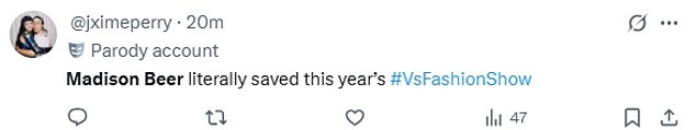One commented: ‘Madison Beer literally saved this year’s VS Fashion Show’.