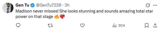 Another added that Beer ‘never misses’ and ‘looks stunning and sounds amazing’.