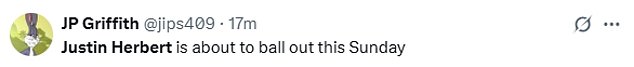 Others described Beer as ‘incredible and gorgeous’ while a NFL fan declared Herbert will now ‘ball out’ this weekend after his seeing his girlfriend dominate the runway.