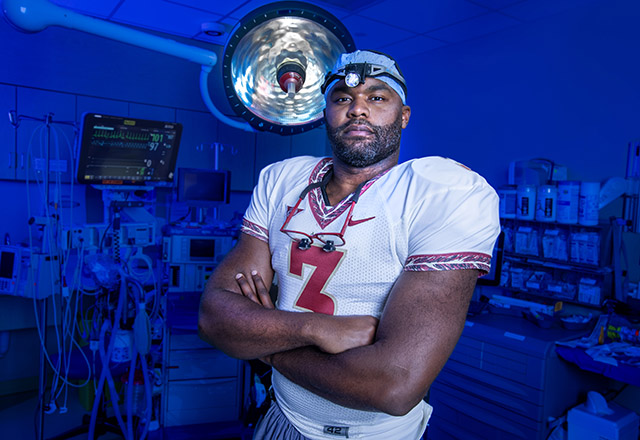 “Football has not only taught me to frame life that way, but it also taught me some of the fundamental pillars of being successful as a physician, as a father, as a husband, as a community leader,” Rolle says. “Those are discipline, focus, hard work, communication, overcoming adversity, mitigating pressure, being adaptable and adjustable.”