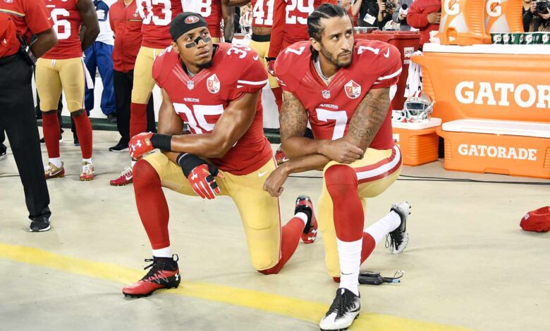 The stars referred back to 2016 when Colin Kaepernick kicked off the #TakeAKnee movement by refusing to stand during the national anthem in protest against police brutality and racial injustice in the United States.
