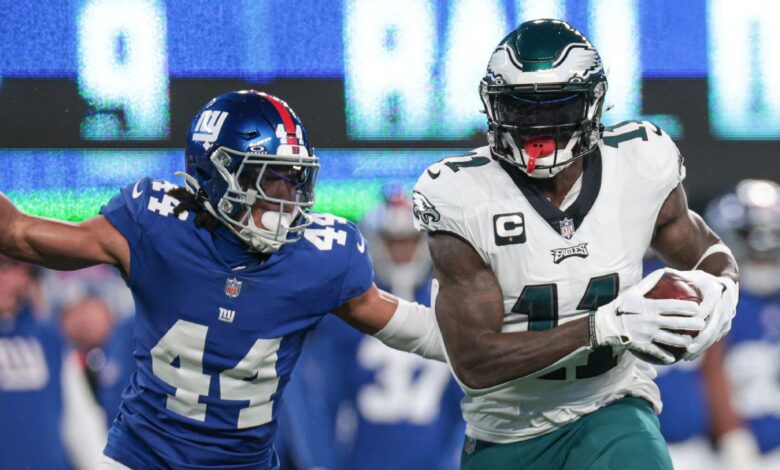 Eagles storyline to watch: It’s the Saquon Barkley game. The running back returns to MetLife Stadium for the first time as an Eagle after six years as the marquee player for the Giants. He has been as advertised for Philadelphia so far with 482 yards and five total touchdowns. He’s unsure of what the environment will be like toward him but said whatever it is, he hopes “it gives me a little extra juice” to help his team win. — Tim McManus