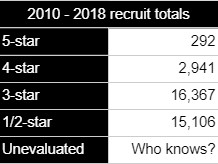 These recruiting services may not be perfect, but they deserve credit for being thorough and doing their due diligence. There are tens of thousands of high school football players to possibly evaluate every season, and the fact the relationship between a recruits rating and future success is nearly linear when you look at the data speaks to the credibility of their process.