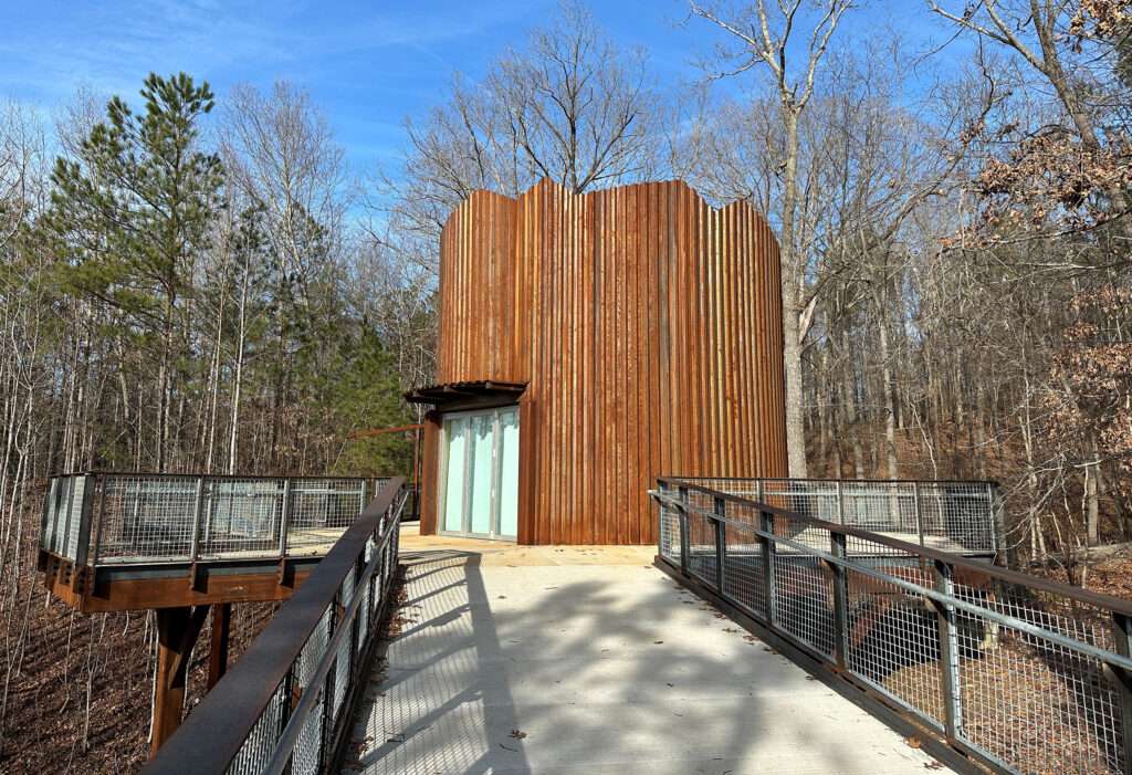 In March 2024, the Gwinnett Environmental and Heritage Center in Buford unveiled an evolving $4.5 million sensory treehouse-type structure along a 340-foot accessible walkway designed to serve residents and visitors with intellectual and physical disabilities. The overall purpose of the treehouse is to connect visitors to the forest and immerse them using sight, sound and touch. The 20-foot-tall treehouse is surrounded by a viewing and activity platform with a high-hanging hammock. Visitors can take part in a circular audio-visual experience in a domed ceiling, which can be used for various teaching and entertainment purposes. The entire structure is ADA-accessible, which allows for wheelchair users to access an area in the forest that couldn’t be reached within conventional footpaths.