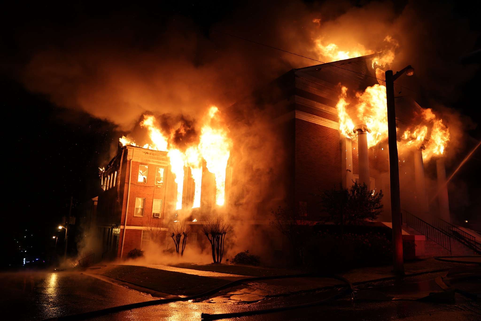 A fire on Thursday night, Nov. 28, the day on which Thanksgiving was celebrated in 2024, destroyed the historic First Pentecostal Church of Buford on East Moreno Street. Portions of the church collapsed as firefighters with Gwinnett Fire & Emergency Services worked to extinguish the blaze. No injuries were reported as churchgoers had attempted to put out the fire.