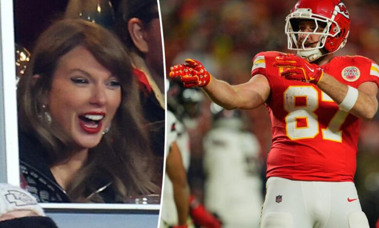 Taylor Swift imitates Travis Kelce’s first-down celebration during Chiefs playoff win