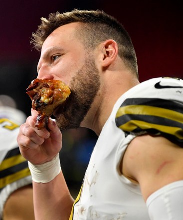 Taysom Hill eats a drumstick on Thanksgiving.AP