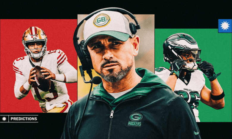 (Top illustration: Dan Goldfarb / The Athletic; photos of Brock Purdy, Matt LaFleur and Jalen Hurts: Ric Tapia, Patrick McDermott and G Fiume / Getty Images)