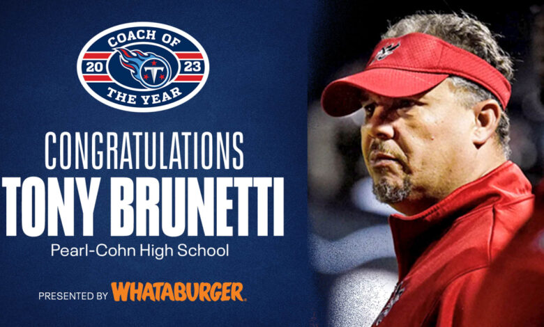 Tennessee Titans Select Pearl-Cohn High School Coach Tony Brunetti as 2023 Coach of the Year