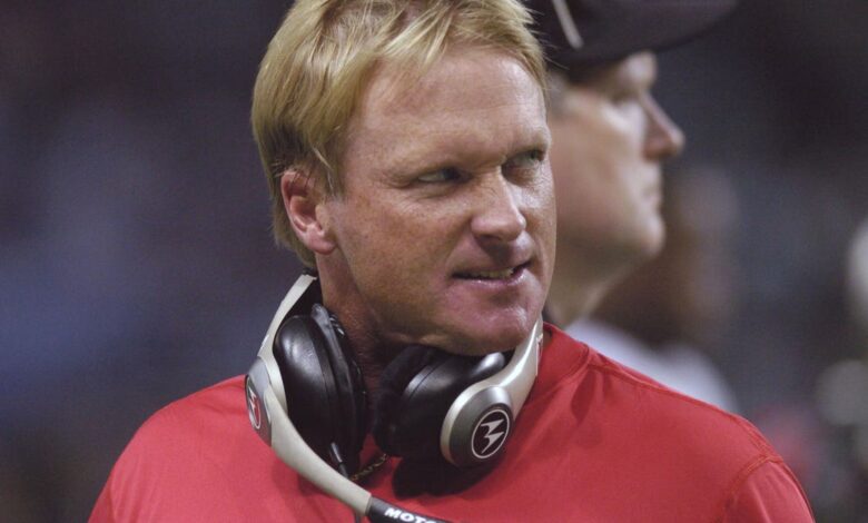 While it certainly helped having a father who was a former NFL executive who could bend the ear of coaches when they had openings — make no mistake — Jon Gruden paid his dues as a football coach. A decade before becoming the younguest NFL head coach at the time at age 34, Gruden worked his way up to land the quarterbacks coaching job at Southeast Missouri State University in April of 1988. He wanted to start coaching right away. The only problem was that his $15,000 annual salary didn’t begin until July — so he found a part-time job ripping out carpets that were being replaced in schools for $6 an hour during the hot Mississippi summer.