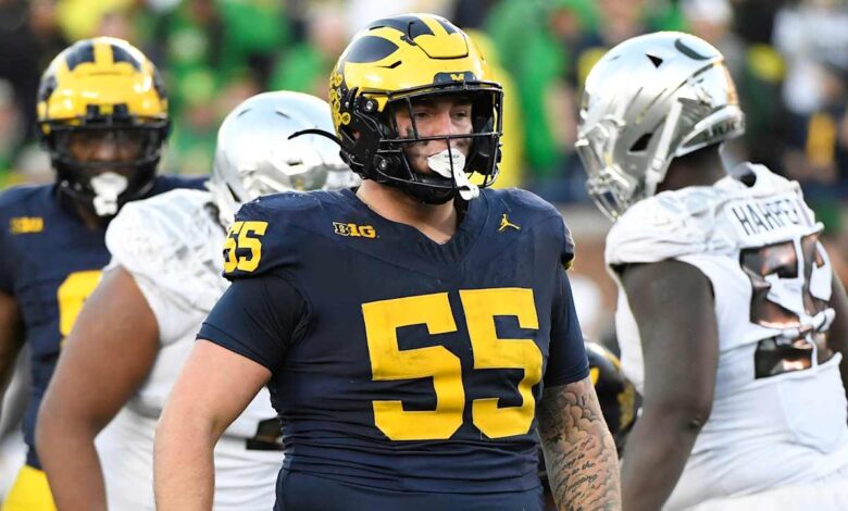 “A lot of these guys are going to kick into guard at the next level, but there are guys that could play tackle, whether it’s Armand Membou [6-3, 325] from Missouri,” Miller said. “You have Josh Conerly [Oregon, 6-3, 315]. I love his ability, he was a running back in high school. And then Josh Simmons [Ohio State, 6-5, 310].