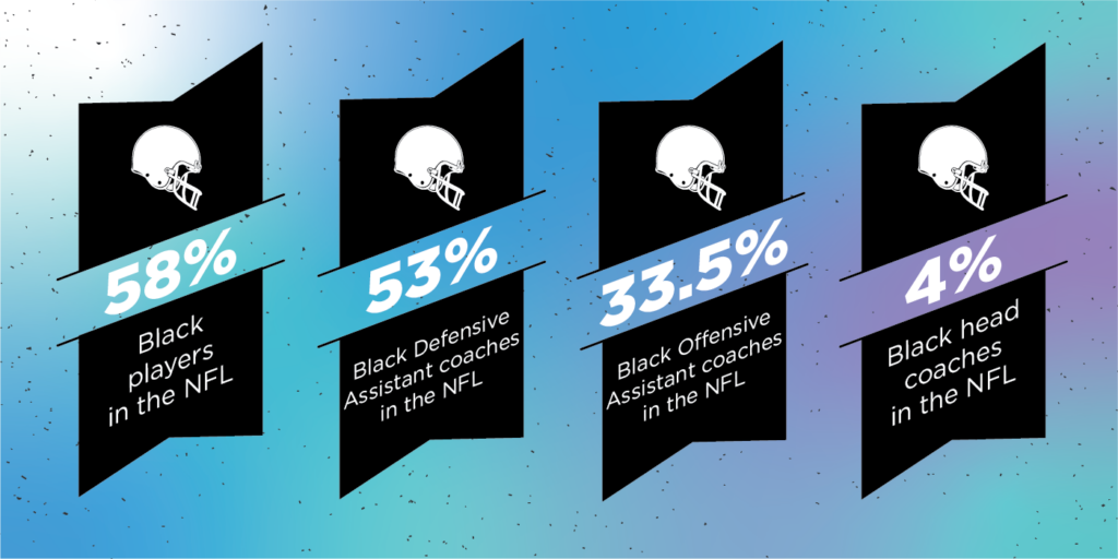 - 53% of all defensive assistant coaches and 33.5% of offensive assistant coaches are Black