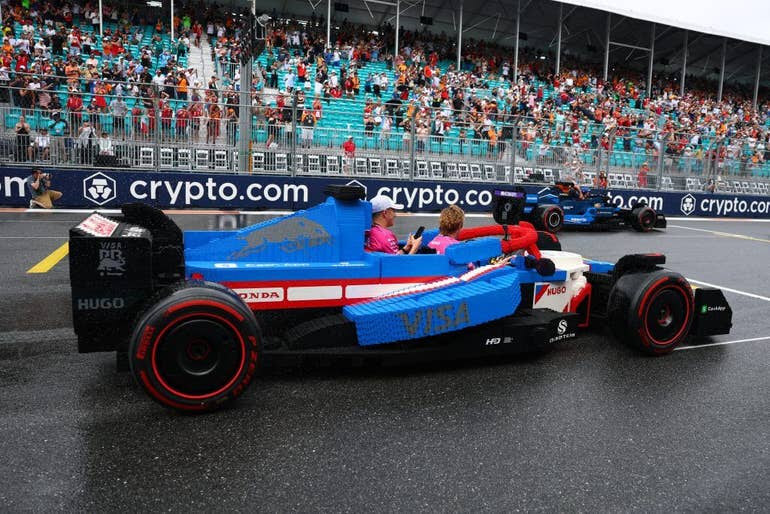 Lego created working F1 cars for the Miami GP. (Bryn Lennon – Formula 1 / Formula 1 via Getty Images)